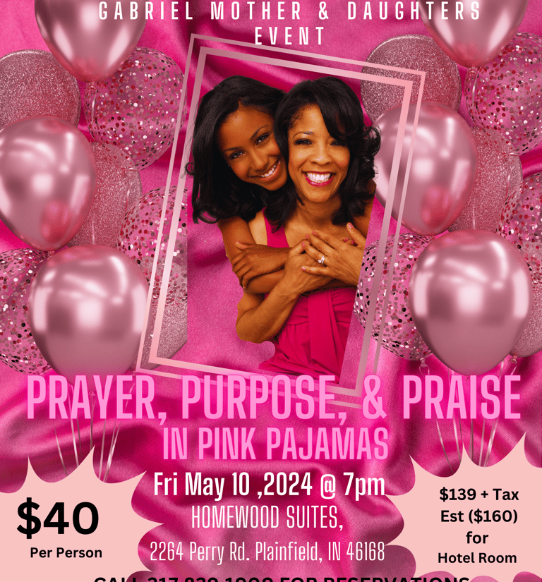 Myself, & The Evangelist Team of Gabriel Missionary Babtist Church (Indianapolis, IN) will be hosting a Mother/Daughter Sleepover at this "P" themed Mother-Daughter Pajama Party.